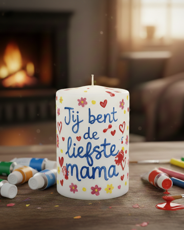 Een mooi en persoonlijk idee is het schilderen van een kaars. Met een witte kaars en verf maak je het perfecte Moederdag cadeautje. Op de kaars schrijf je bijvoorbeeld “Jij bent de liefste mama” en versier je deze met hartjes of bloemetjes. Dit soort Moederdag cadeau knutselen is perfect als je iets kleins maar betekenisvols wilt geven!