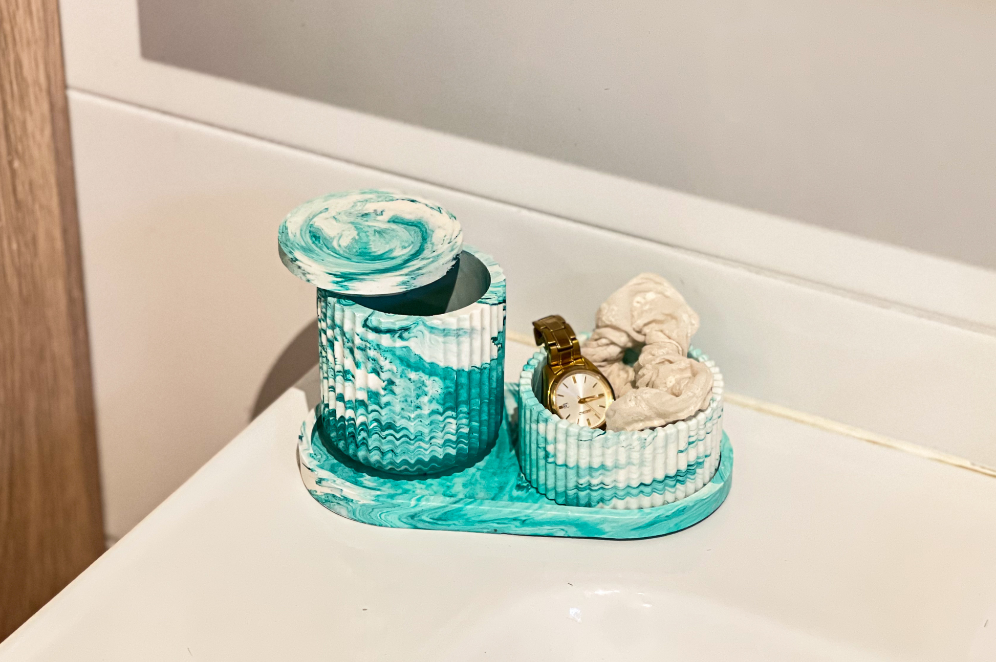 Ga creatief aan de slag met giethars met dit complete DIY-pakket. In deze box vind je alles wat je nodig hebt om zelf een stijlvol en praktische badkamerset te maken. Met dit pakket kan je alle kanten op gaan. Gebruik het schaaltje als sieradenschaaltje of zeepbakje. Bewaar je watjes in het kleine schaaltje of je tandenborstels in het grotje bakje. Alle materialen zijn al zorgvuldig afgemeten, dus je kunt direct aan de slag - geen gedoe met afwegen. Dankzij de duidelijke stap-voor-stap instructies lukt het gegarandeerd, ook als je nog nooit met giethars hebt gewerkt.