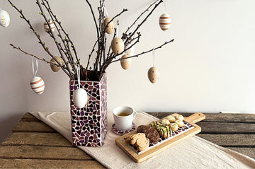 For spring, our pastel glass mosaic bundle is a beautiful choice. Specially curated for Easter, you can choose from lilac, yellow, green or aqua blue mosaic pieces. The soft tones work perfectly for spring styling and seasonal decorating.