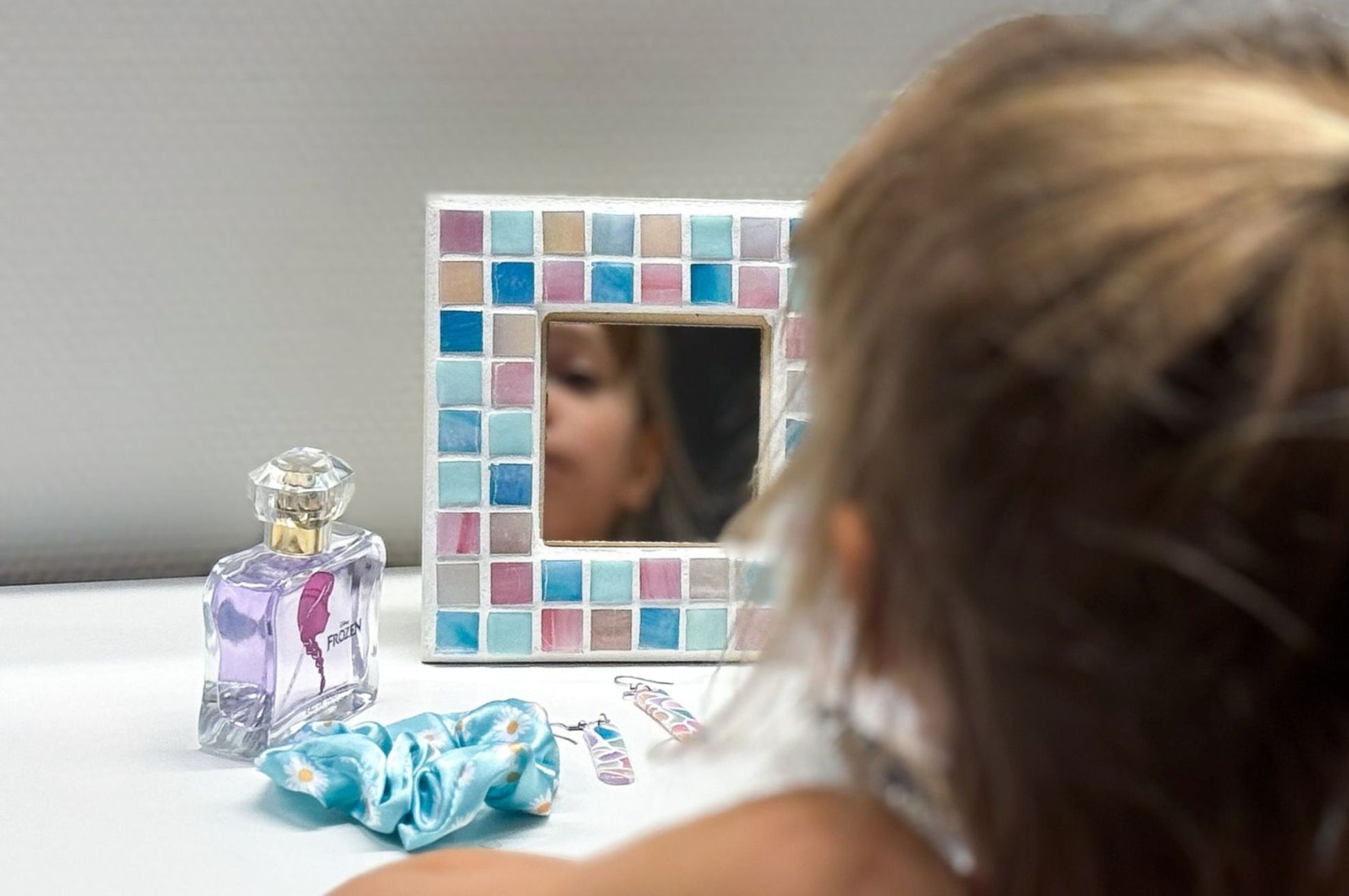 Create your own stylish glass mosaic mirror with this fun DIY kit for teens.