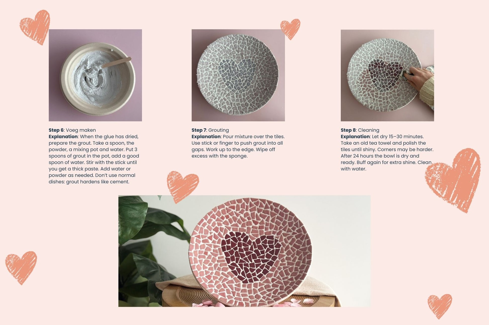 DIY mosaic bowl with heart. A creative Valentine’s gift to make together or give.