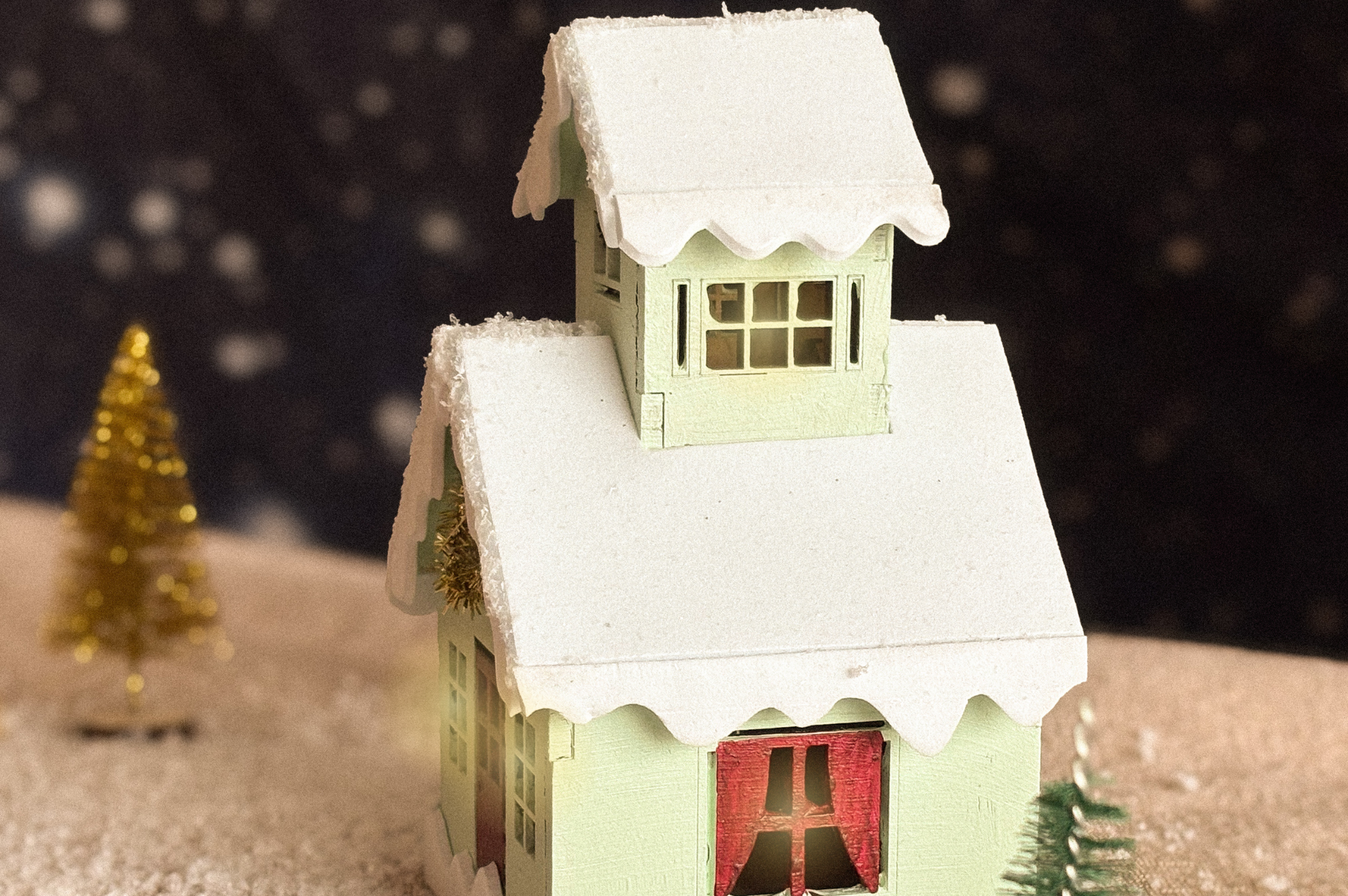 Hout kersthuisje in de kleur groen