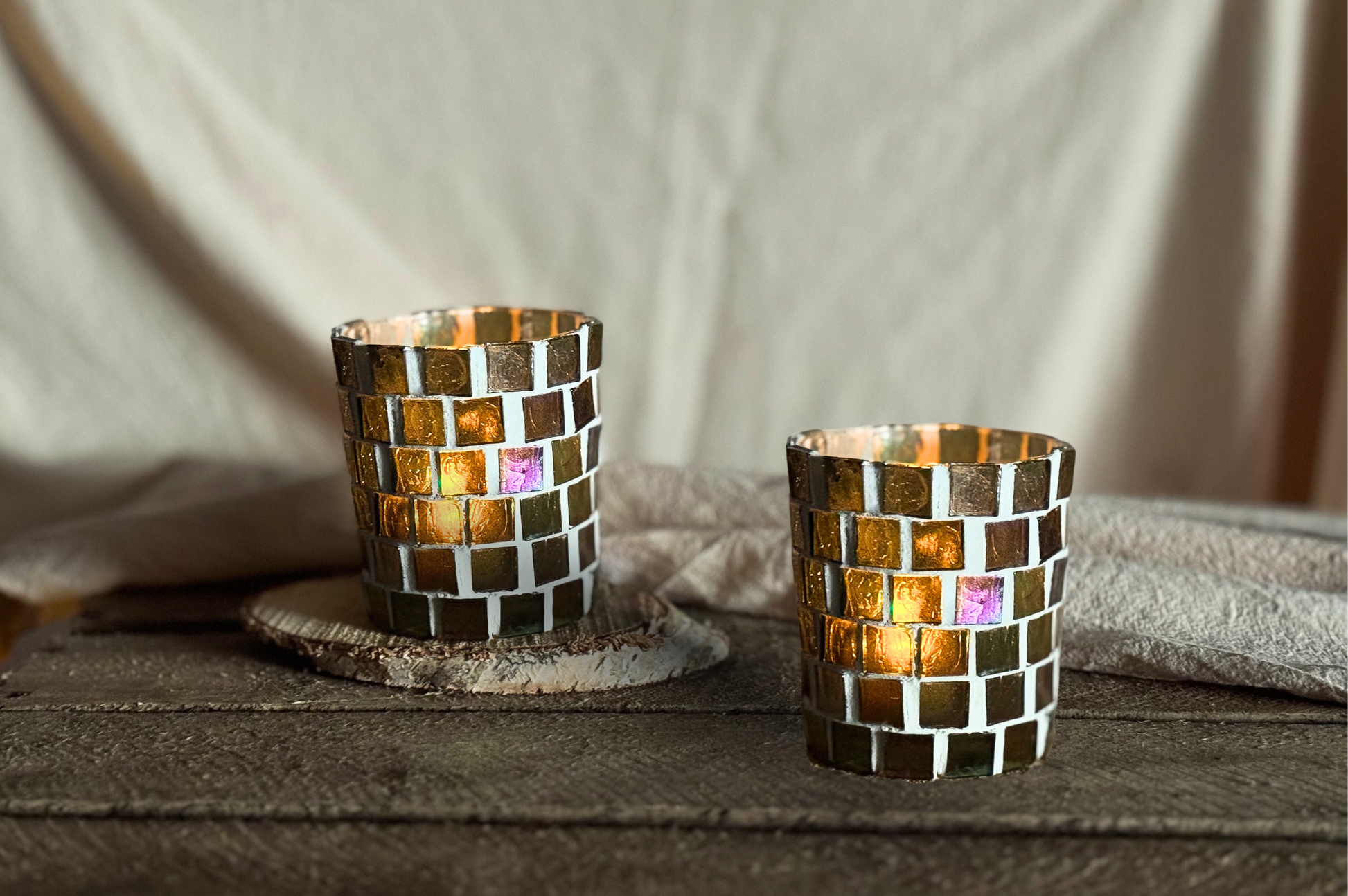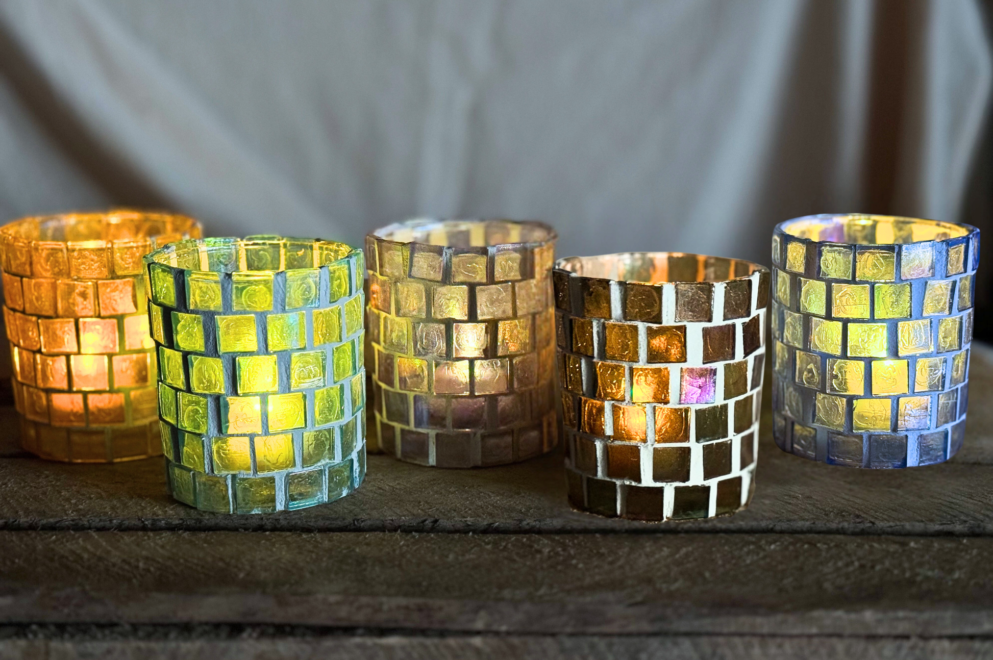 Create atmospheric glass mosaic tealight holders with the DIY Glass Mosaic Tealight Kit for creative moments alone or with friends. Perfect as a gift or for your home.